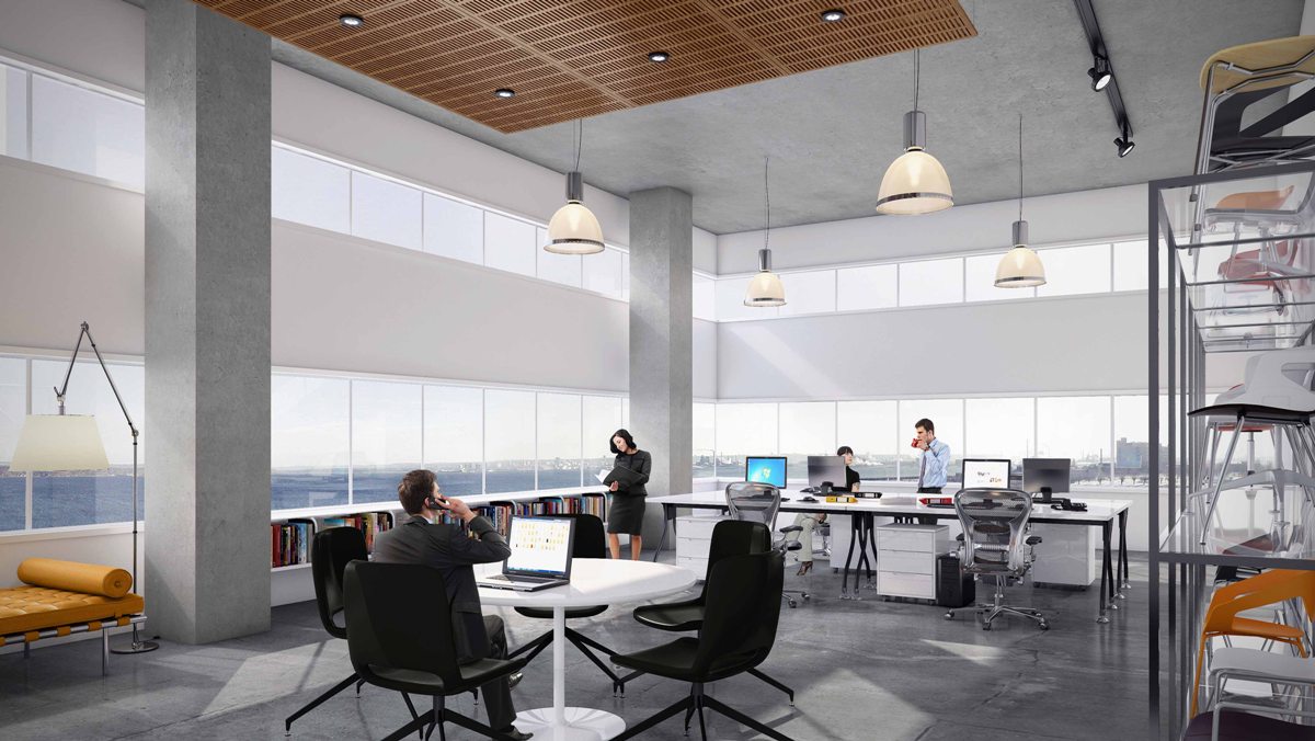 The interior design aims to provide a hybrid workplace that is exciting and innovative.