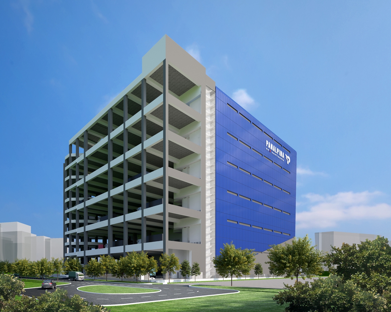 This is a purpose built logistic centre for Panalpina, the Swiss freight forwarding and logistic company. It is constructed over 6 storeys and offers air-conditioned  warehouse space with high specifications and state of the art automation, rooftop yard and container storage.
